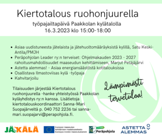 Maisemapelto on osa P-P Leader ry:n ”Kiertotalous ruohonjuurella” – hanketta, jossa Paakkola oli yksi pilottikylistä. Maisemapellon muokkaustyöstä iso kiitos Juhani ”Jussi” Rantamölölle ja kylvöpäivän seitsemälle ahkeralle talkoolaiselle, homma sujui ripeästi. Oheisessa kuvassa ovat vasemmalta alkaen Jorma Norman, Kauko Ylioinas ja kiertotalouskoordinaattori Sanna-Mari Suopajärvi/ P-P Leader ry.